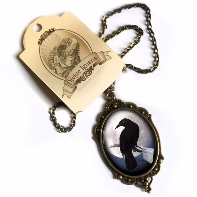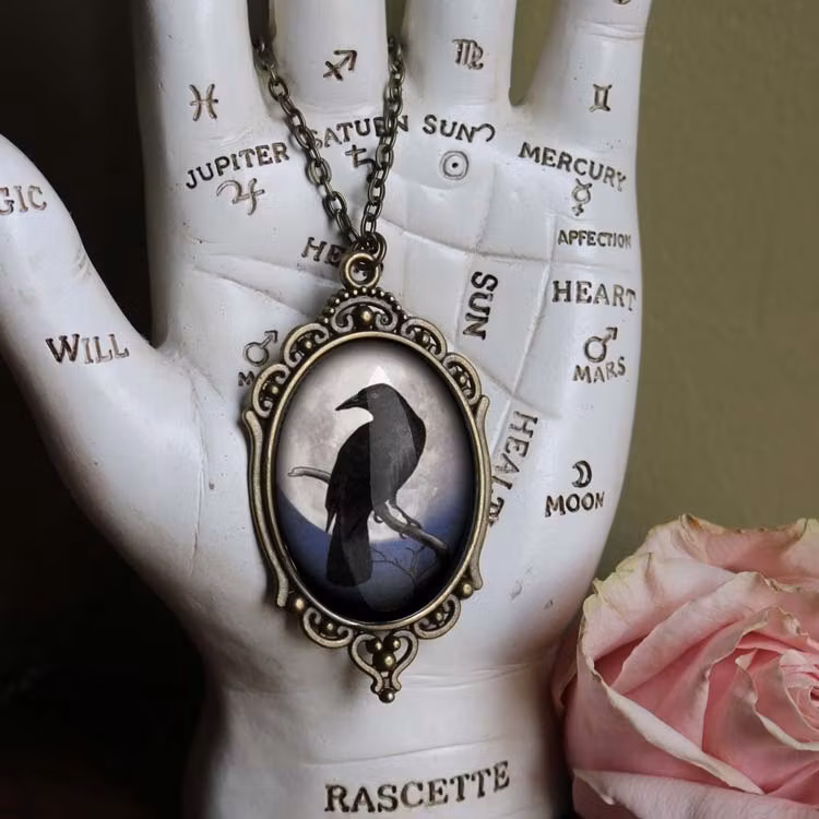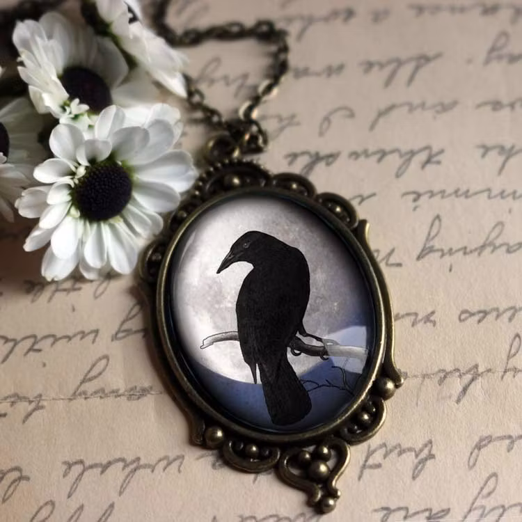 Halsband, stor oval berlock – Kråkfågel, fullmåne