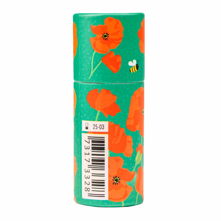 Förpackningen består av miljövänlig hållbar papp i en vacker design med klarröda vallmoblommor – omtyckt av bina och en klassisk gotländsk vy. Ceratet är dubbelt så stort som ett vanligt cerat och appliceras därför enkelt på önskade områden. Varje cerat är tillverkat för hand på Gotland av ett småskaligt familjeföretag med passion för hållbarhet.