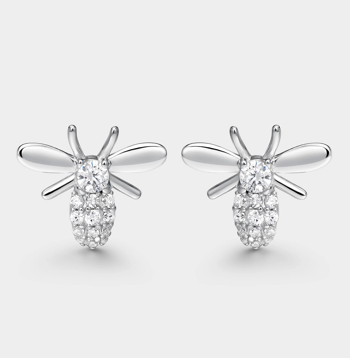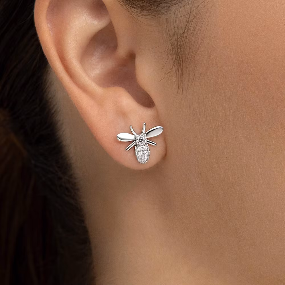 Eleganta silverörhängen formade som bin, dekorerade med gnistrande kubisk zirkonia i pavéinfattning. Stenarna i kombination med den stilrena designen ger ett lyxigt uttryck.