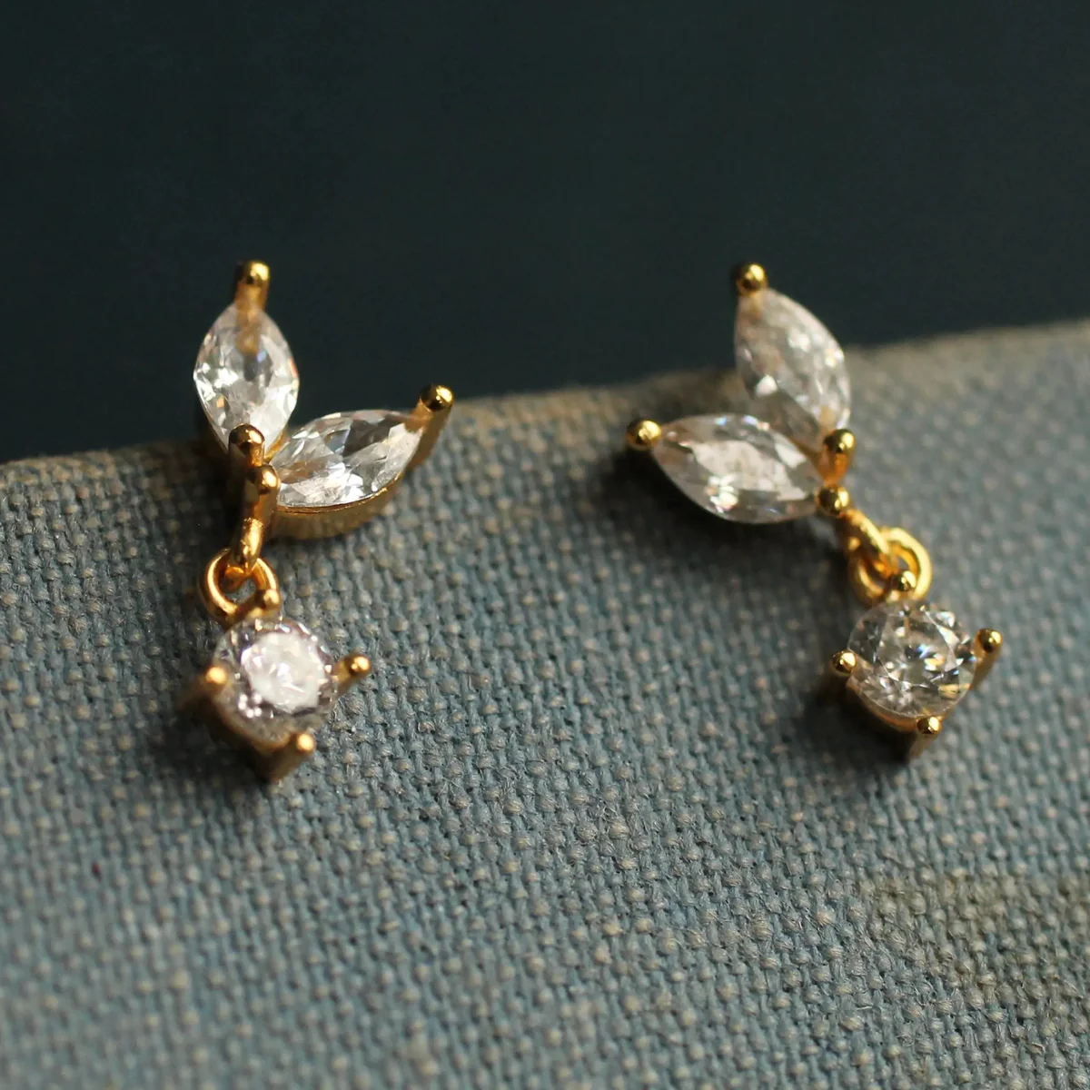 Nätta örhängen i form av små blad dekorerade med gnistrande kubisk zirkonia. Den organiska formen tillsammans med den varma guldfinishen ger ett elegant och stilrent uttryck.