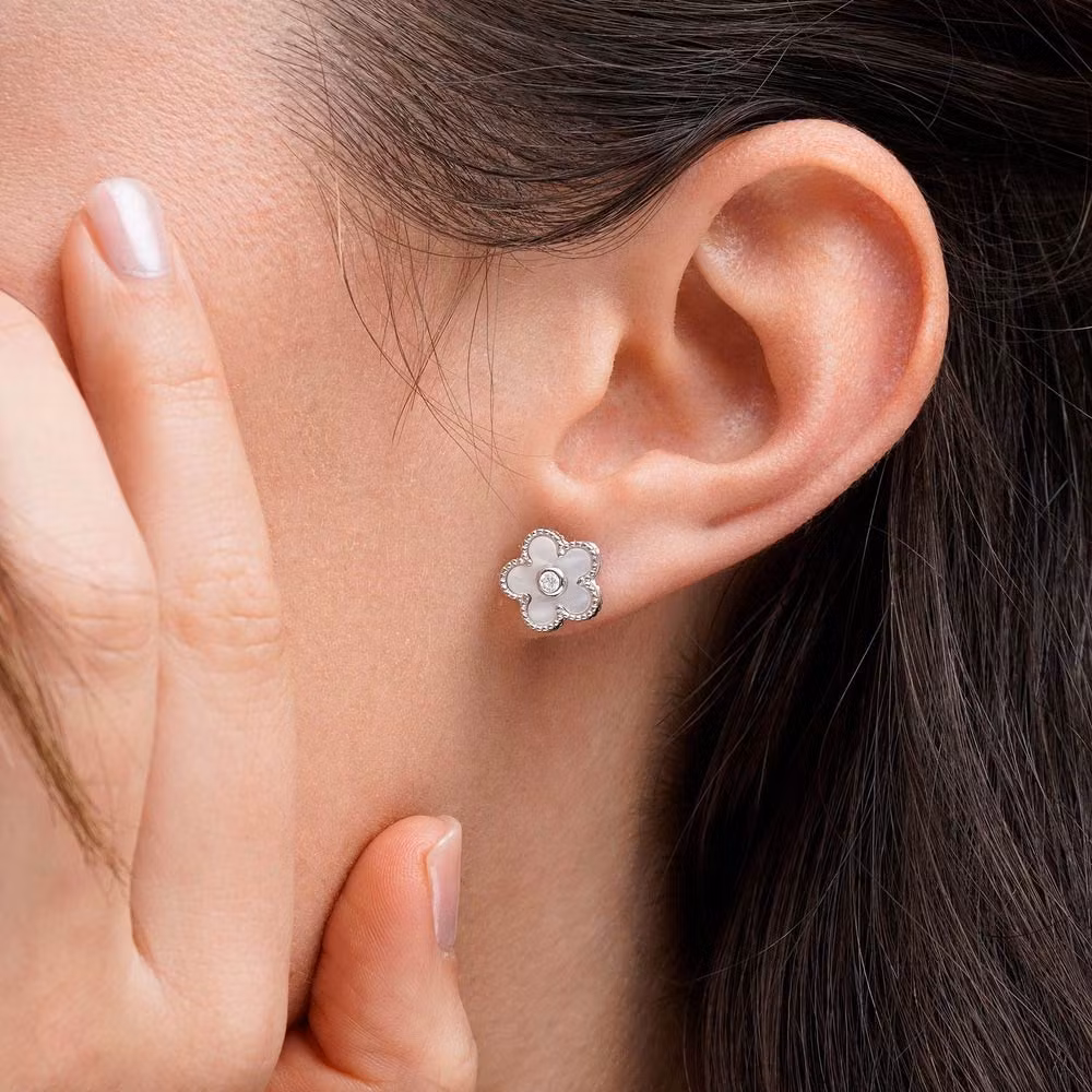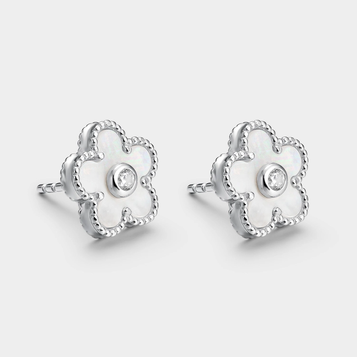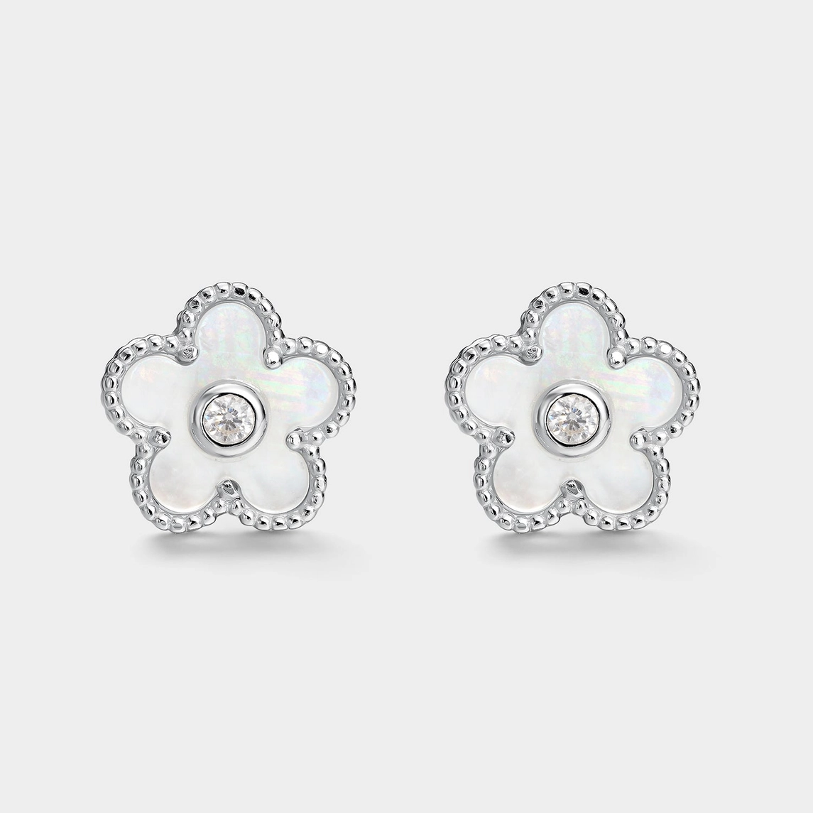 Örhängen – Blomma i pärlemor med kubisk zirkonia