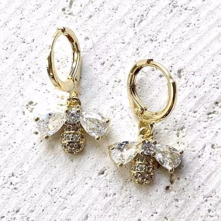 Örhängen med gnistrande bin som dinglar under runda krokar med lås. Örhängena passar lika bra både till vardags och fest.