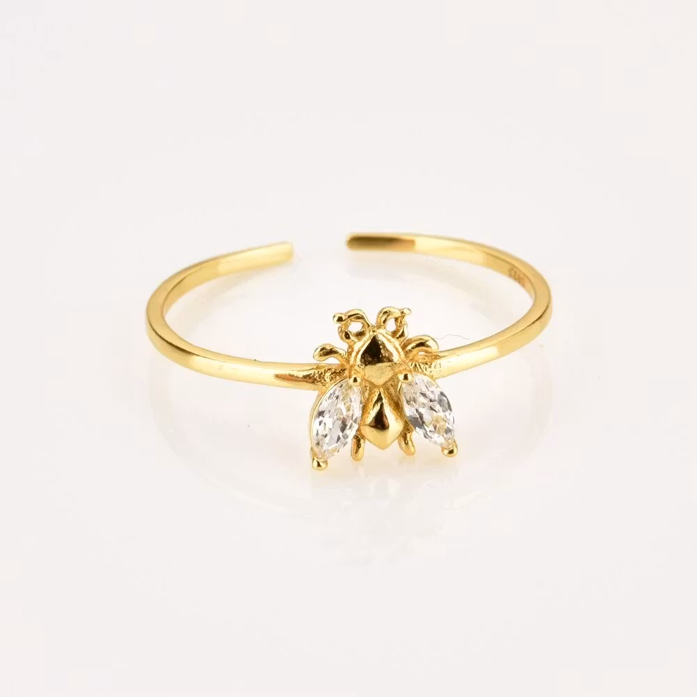 Ring med gnistrande stenar i form av ett bi. Ringen är smal och dessutom öppen, vilket gör att den passar de flesta.