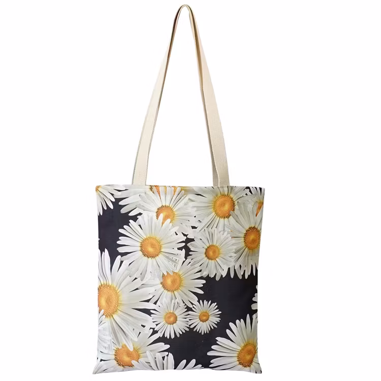 Slitstark, vattenavvisande tygkasse med härligt färgstarkt mönster av prästkragar. Med rymlig design och bekväma handtag är kassen perfekt vid många tillfällen. Ett snyggt och hållbart alternativ för dig som vill shoppa med stil.