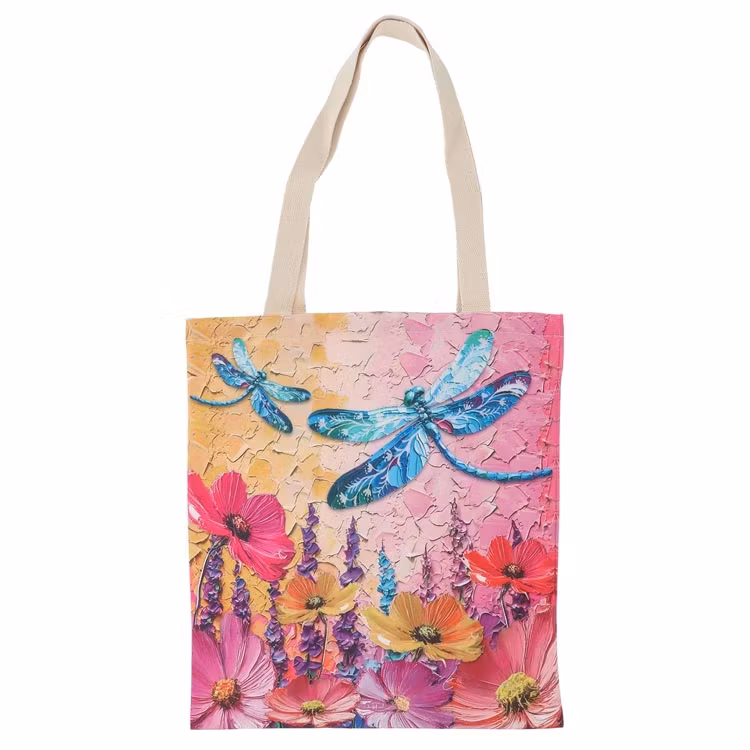Slitstark, vattenavvisande tygkasse med härligt färgstarkt trollsländemönster. Med rymlig design och bekväma handtag är kassen perfekt vid många tillfällen. Ett snyggt och hållbart alternativ för dig som vill shoppa med stil.